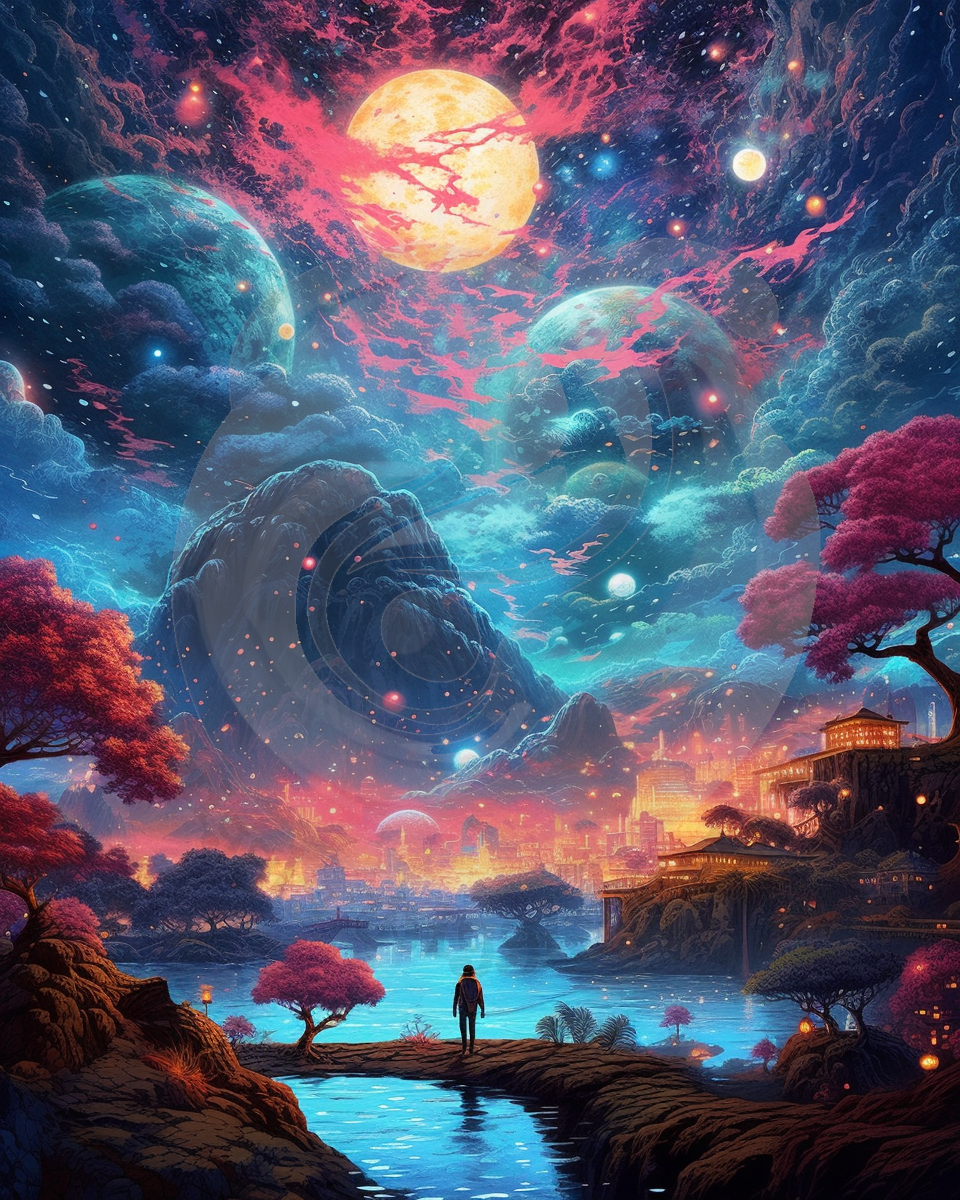 Dreamscape Cosmic Painting Art, Stargaze, Scenery, Digital Art, Poster Size, Room Decor, PNG, Commercial Use - 13 PNG Files